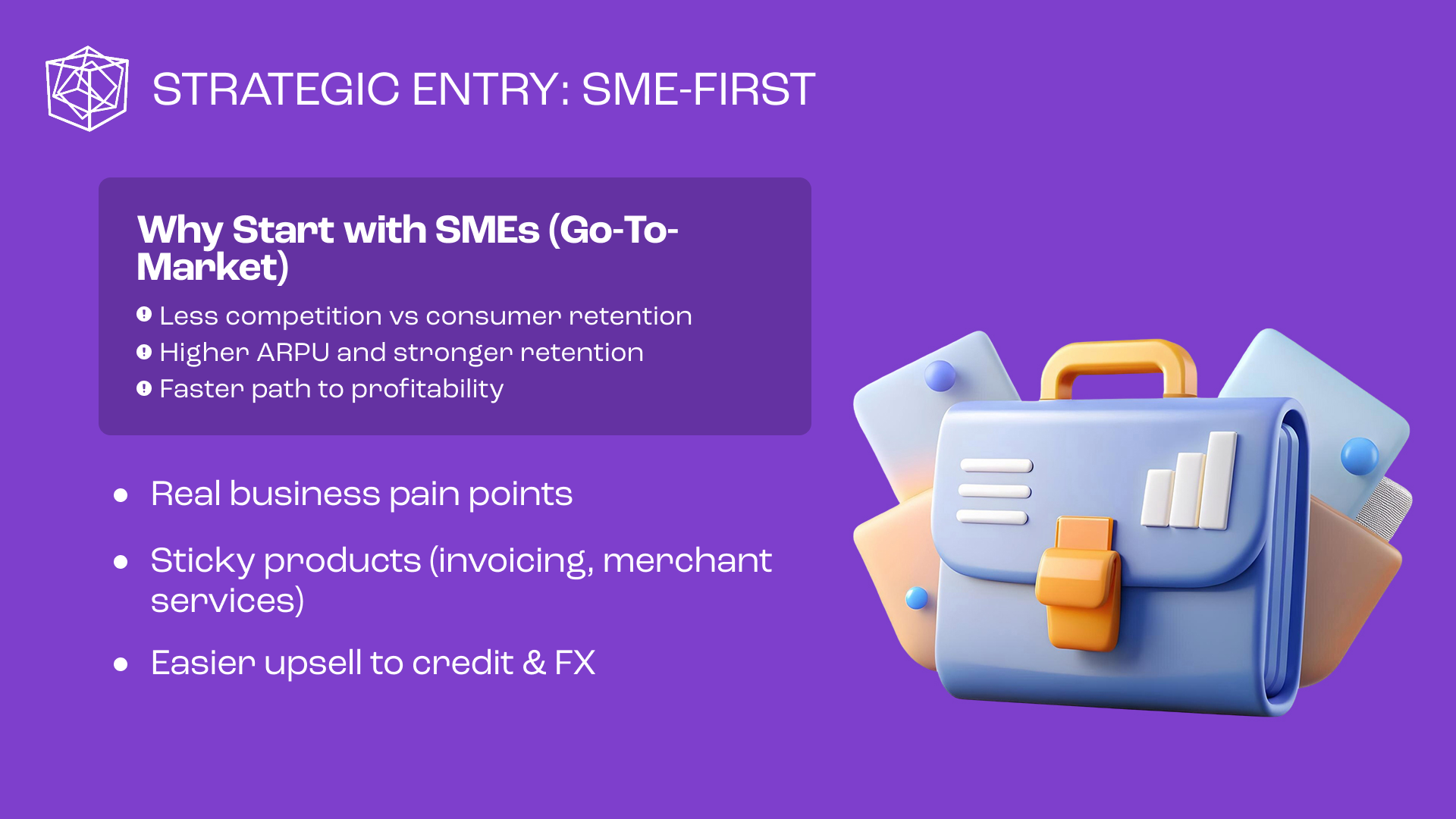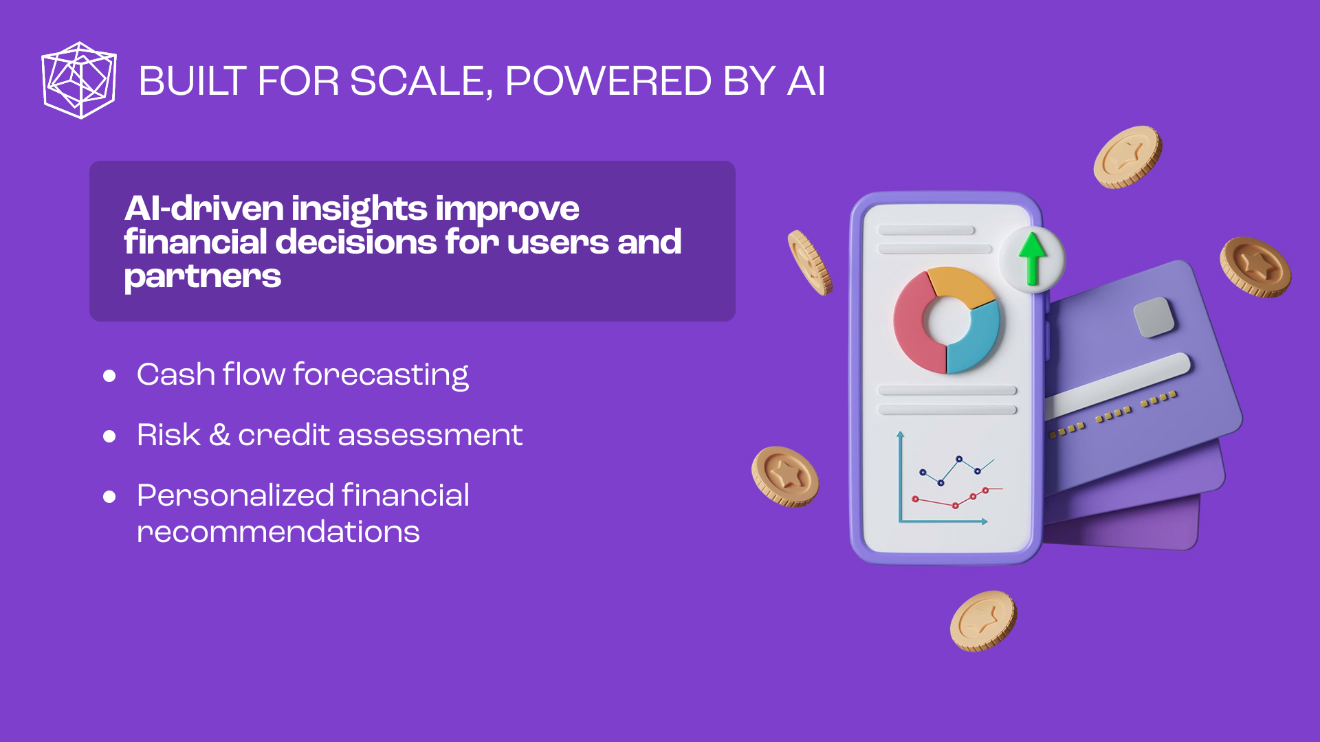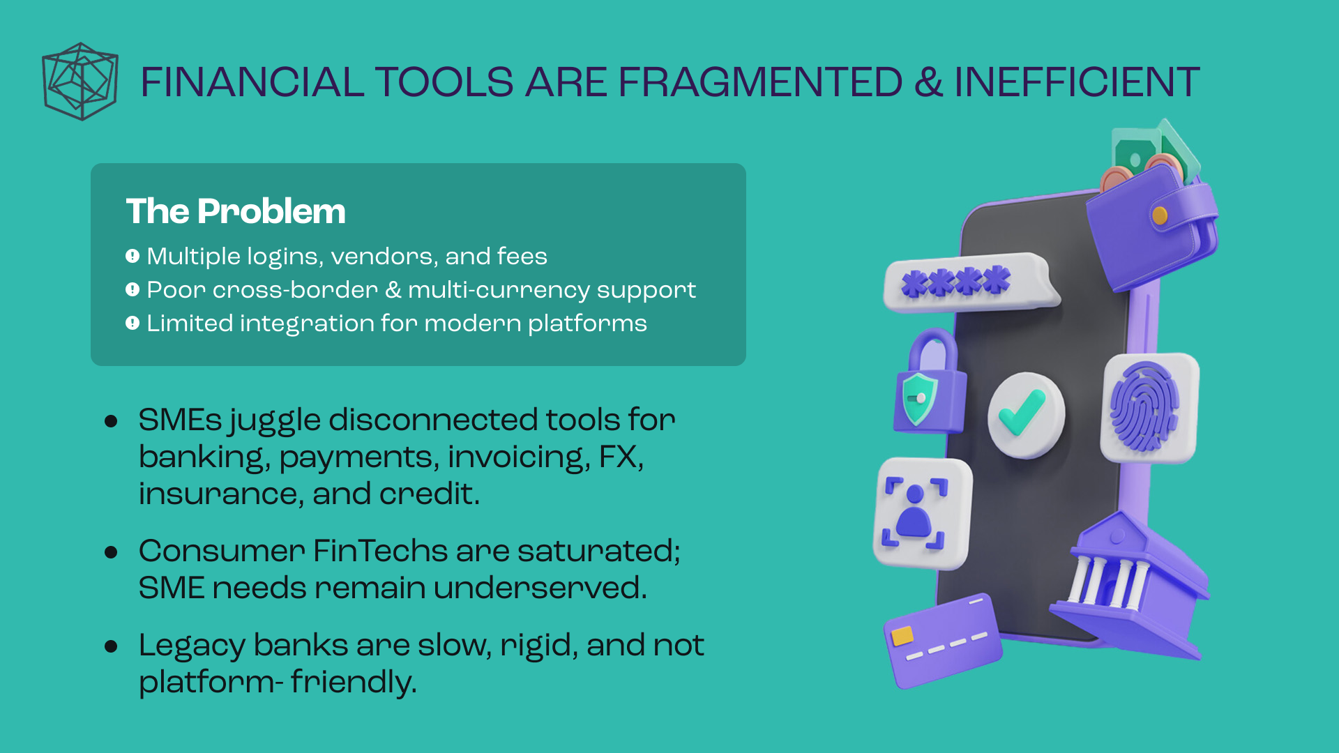 For Cube Financial Group, the objective was to establish a forward-looking brand identity that clearly communicates a complex, multi-layered fintech offering. The solution was a modular logo system built around three interlocking cubes, representing consumer banking, business solutions, and B2B Platform-as-a-Service, unified into a single AI-driven ecosystem. The geometric form reinforces stability and trust, while its multi-dimensional structure signals innovation and scalability. The identity was delivered as a flexible logo system optimized for digital and mobile use, alongside a PowerPoint investor template designed to support clear, confident storytelling for fundraising and growth.